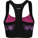 Colorato sport bra comodo e traspirante pensato specificamente per l'attività sportiva. E' prodotto in leggera microfibra elasticizzata con struttura differenziata a seconda delle necessità, con trattamento anitodore a rapida asciugatura HEIQ. L'alta fascia migliora la stabilità e non crea attriti, le coppe sono movibili, modellate e offrono elevato sostegno.