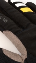 Guanto con 5 dita con cover imbottita per aumentare la termicità e rinforzi in pelle sul palmo.