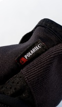 Guanto da scialpinismo in Polartech con cover imbottita. Rinforzi in pelle sul palmo. Imbottitura 140 gr. Levelloft per un'alta termicità. Sistema touch che permette l'utilizzo di schermi touch con guanto indossato.