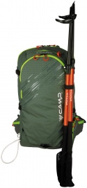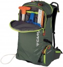 Lo Ski Raptor 30 si aggiorna nei dettagli confermando i suoi punti forti. Leggerezza, funzionalità, comodità e robustezza restano quindi le parole d’ordine di un prodotto che va oltre lo scialpinismo classico, rispondendo anche alle esigenze degli appassionati di freeride che vivono la neve all’insegna della fantasia e della velocità. Molto robusto grazie alla costruzione in nylon 420D, lo Ski Raptor 30 si distingue per un sistema porta sci estremamente efficace, caratterizzato dalla possibilità di spostare l’asola inferiore per le code verso lo schienale o all’esterno a seconda del contenuto dello zaino. La prima opzione ottimizza il trasporto degli attrezzi con zaino vuoto o quasi vuoto, mentre la seconda è ideale quando lo Ski Raptor è a pieno carico. Il vano anteriore, predisposto per accogliere pala e sonda, è sviluppato verso l’interno a tutto vantaggio dell’estetica. Passando al comfort, invece, spiccano gli spallacci imbottiti con bordatura esterna e lo schienale ergonomico e ventilato. Doppio porta piccozza, porta bastoncini, porta casco e numerosi altri accessori esaltano la funzionalità di un prodotto che con i suoi 30 litri è pensato per le uscite più lunghe, anche in alta montagna, dove lo sci si fa autentica avventura.