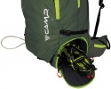 - Vano porta ramponi a tunnel con apertura laterale munita di zip, accessibile senza togliere lo zaino e collegabile al vano principale grazie a una zip interna