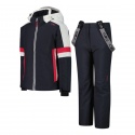 Set da sci composto da giacca con cappuccio staccabile e pantaloni con bretelle. L'imbottitura Feel Warm Flat garantisce calore anche in condizioni di freddo e umidità, mentre la membrana Clima Protect, il trattamento esterno water repellent e le cuciture parzialmente nastrate offrono protezione dagli agenti atmosferici mantenendo un'ottima traspirabilità. Un insieme di tecnologie pensate per mantere asciutti e al caldo i piccoli sciatori durante le giornate sulla neve. Giacca con polsini regolabili con velcro e polsini interni in licra con apertura per il pollice, zip frontale con patta antivento e anti sfregamento, fondo regolabile con coulisse, due tasche laterali con zip e skipass pocket sulla manica. Pantaloni con bretelle regolabili, ghetta antineve sul fondo, due tasche con zip.