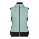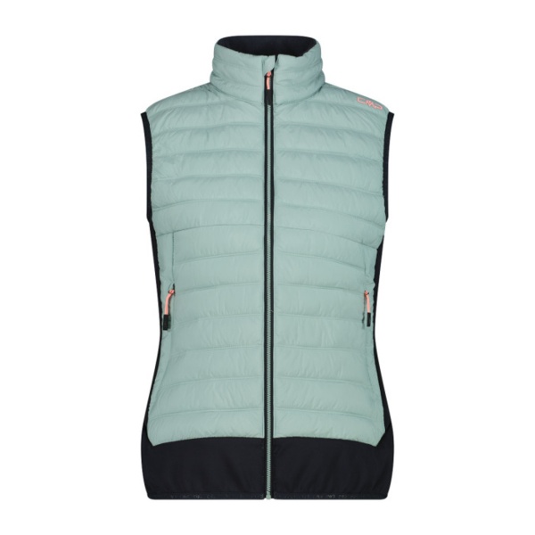 Gilet ibrido da donna della linea Unlimitech, un capo perfetto come secondo strato nelle attività outdoor ad alta intensità. L'imbottitura Primaloft Black thermoplume, realizzata al 100% in poliestere riciclato, riproduce il calore leggero, la morbidezza e la comprimibilità della piuma d'oca unita alla sostenibilità della fibra riciclata. Il tessuto esterno è idrorepellente, inoltre il capo è completato da zip frontale con patta antivento e antisfregamento, fondo elasticizzato, due tasche laterali con zip.
