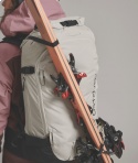 Lo zaino può essere rapidamente compresso grazie alle cinghie integrate sui lati, per ripiegarsi sul dorso come una seconda pelle, assicurando sempre la massima aderenza, anche in movimento. Per le discese in corda doppia nei solchi fluviali o nei brevi tratti a piedi, lo zaino freeride dispone di tutte le opzioni di fissaggio necessarie per gli sci, la picozza o la corda, oltre alla collaudata rete di fissaggio casco, al cartellino d’emergenza, e al supporto per il sistema di idratazione. Tutte le funzionalità sono accessibili dall'esterno in modo da non rimanere mai bloccati, anche su terreni accidentati.