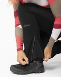 Il taglio affusolato aggiunge un effetto generale di semplicità, mentre le ginocchia articolate, le cerniere a soffietto sui polsini (per adattarsi agli scarponi) e il gancio per il laccio e il nastro di aderenza in silicone sono caratteristiche che migliorano l'esperienza dell'escursionismo invernale. La vita è dotata di una chiusura con cerniera e bottoni a pressione, con una sezione elastica sul retro per un comfort flessibile. È presente anche una piccola tasca laterale nascosta.