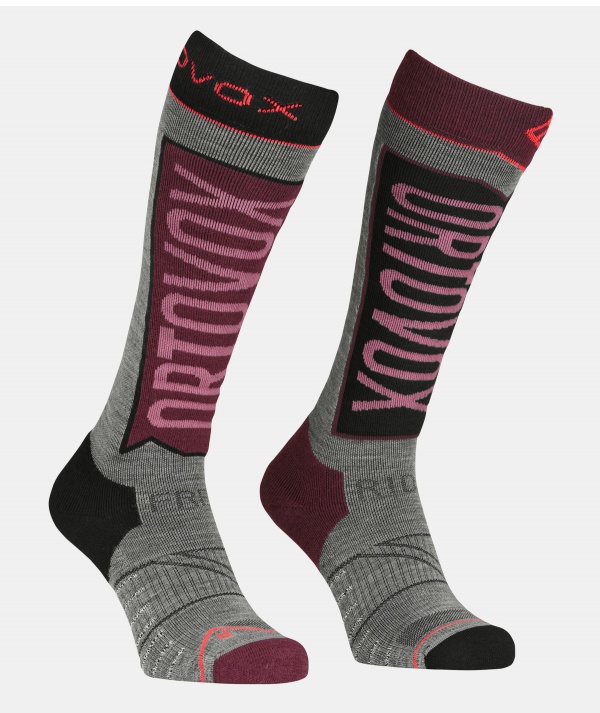 La fine e morbida lana merino accarezza piacevolmente la pelle controllando temperatura e umidità. Le cuciture piatte delle punte evitano gli sfregamenti e la formazione di vesciche, anche a seguito di movimenti intensi. Il comfort delle fasce e la vestibilità ergonomica destra - sinistra assicurano una calzata perfetta e impediscono di scivolare, mentre le imbottiture di punta e tallone smorzano gli impatti prolungando la durata dei capi.