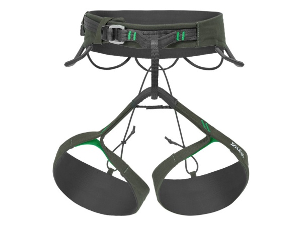 Abbastanza leggero per arrampicare in estate e dalla resistenza degna di vie lunghe in montagna: due portamateriali frontali rigidi, due portamateriali flessibili, uno posteriore e passanti per chiodi da ghiaccio.