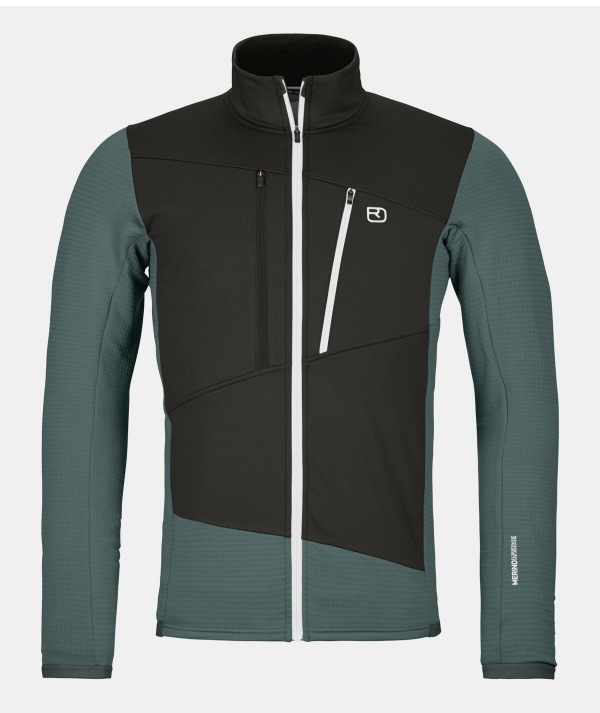 Il materiale MERINO FLEECE GRID con la sua struttura waffle trattiene l'aria calda all'interno e rilascia l'umidità all'esterno. In questo modo, la giacca risulta piacevolmente calda, si asciuga rapidamente ed è estremamente traspirante. La morbida lana Merino sulla pelle assicura una regolazione ottimale della temperatura e previene la formazione di cattivi odori. Nelle zone più esposte come il petto, le spalle e la testa, gli inserti realizzati in MERINO FLEECE LIGHT traspirante ed elastico proteggono dal vento e dal freddo.