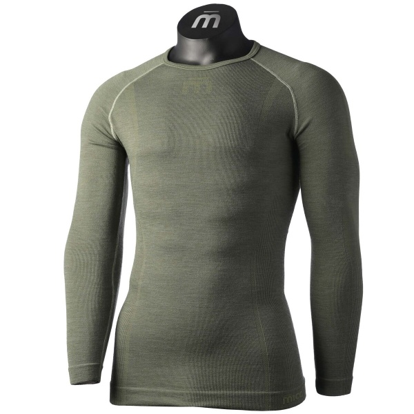 POTERE ISOLANTE DELLA NATURA + GESTIONE DEL SUDORE AD ALTA TECNOLOGIA Seamless realizzato con fibra di polipropilene Dryarn® ad alto grado di trasferimento dell’umidità corporea (verso l’interno) in combinazione con pura lana Merinos, il migliore coibente termico presente in natura