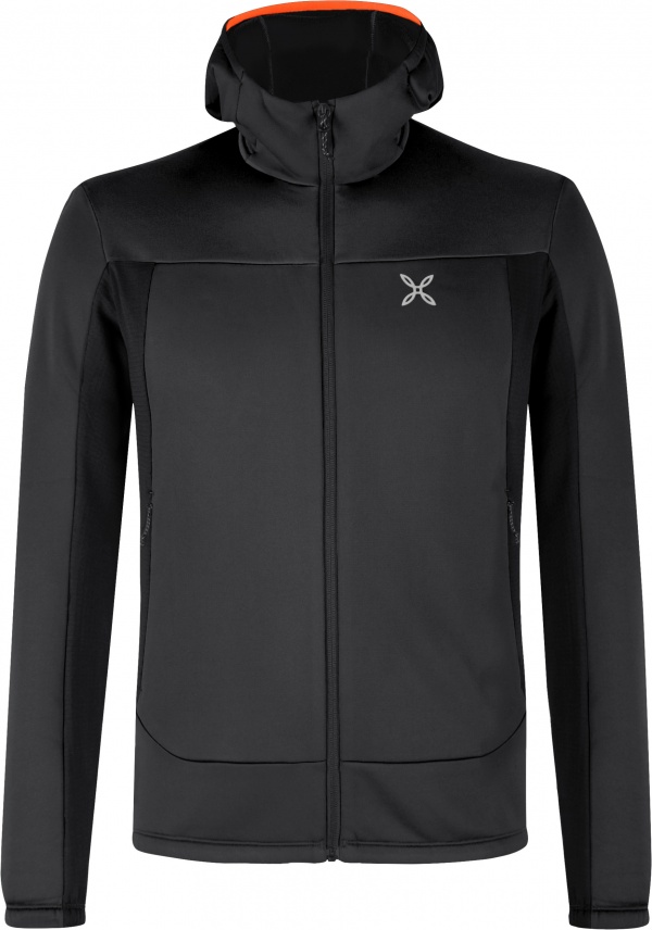 • Tessuto pile power stretch garzato sul rovescio altamente traspirante ad elevata protezione dai raggi UV