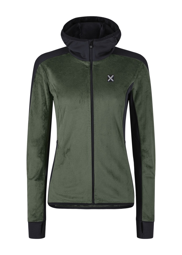 Maglia aperta donna con cappuccioTessuto double pile poliestere termicoContrasto in...