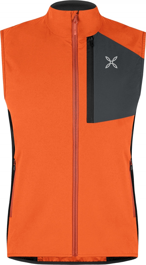 • Gilet uomo • Tessuto nylon DWR 4 way-stretch • Contrasto in tessuto poliestere • Parzialmente foderato in tessuto rete • Centro davanti con zip, tasche mani con zip, tasca petto con zip • Tasche interne aperte • Giromaniche e fondo rifiniti con elastico • Capo ideale per sci alpinismo, running e varie attività outdoor