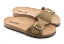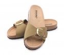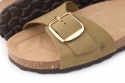 Pianella regolazione un fibbione con tomaia in pelle nabuk senza cuciture, sottopiede in gomma-sughero rivestito in pelle e battistrada in EVA (etil vinil acetato) 8mm.