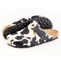 Sabot con tomaia in vera pelle cavallino mucca con cuciture. Regolabile, con cinturino dotato di fibbia in metallo.