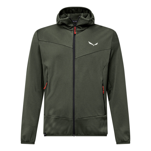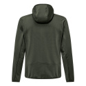 Questo strato intermedio versatile è progettato per garantire una buona vestibilità anche sotto un guscio esterno. È dotato di due tasche laterali con cerniera, polsini e orli elasticizzati, e di un cappuccio caldo per proteggere dal freddo.