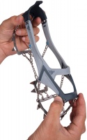Altamente performante, leggero e robusto, l’Ice Master Pro è il non plus ultra dei nostri ramponcini. Un prodotto versatile all’insegna dell’innovazione, caratterizzato dall’inedito sistema di fissaggio 3D bimateriale, più morbido e avvolgente dove occorre adattabilità e più rigido e robusto dove serve supporto. L’innovazione sta anche nella struttura minimale in acciaio inox, con doppio snodo nella parte anteriore che garantisce un perfetto adattamento a qualsiasi suola e alla sua deformazione durante la camminata. Le 16 punte, adeguatamente proporzionate, sono disposte per massimizzare trazione, tenuta laterale e frenata in presenza di neve, ghiaccio o comunque su fondi a bassa aderenza (fango, erba bagnata, rocce lichenose ecc.). Le micro-catene di collegamento in acciaio inox contribuiscono sia alla leggerezza sia all’essenzialità dell’attrezzo. La custodia in dotazione, leggera e compatta, completa la proposta, rendendo l’Ice Master Pro un prodotto da avere sempre nello zaino, pronto a garantire la sicurezza indispensabile durante lunghe escursioni, alte vie e trekking.