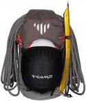 - Porta casco amovibile in rete elastica, da agganciare allo zaino mediante le apposite asole in fettuccia