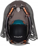 - Porta casco amovibile in rete elastica, da agganciare allo zaino mediante le apposite asole in fettuccia