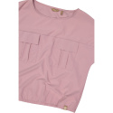 Il capo è arricciato sul fondo da un elastico, che ne valorizza la forma senza comprimere. Due tasche frontali completano il design Leggera e versatile, questa T-shirt unisce stile casual e funzionalità tecnica, ideale per look dinamici e attivi.