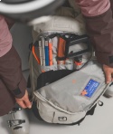 Lo zaino può essere rapidamente compresso grazie alle cinghie integrate sui lati, per ripiegarsi sul dorso come una seconda pelle, assicurando sempre la massima aderenza, anche in movimento. Per le discese in corda doppia nei solchi fluviali o nei brevi tratti a piedi, lo zaino freeride dispone di tutte le opzioni di fissaggio necessarie per gli sci, la picozza o la corda, oltre alla collaudata rete di fissaggio casco, al cartellino d’emergenza, e al supporto per il sistema di idratazione. Tutte le funzionalità sono accessibili dall'esterno in modo da non rimanere mai bloccati, anche su terreni accidentati.