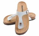 Sandalo infradito regolazione una fibbia, con tomaia in pelle ingrassata conciata artigianalmente, sottopiede in gomma-sughero ricoperto in pelle e battistrada 8mm in EVA.