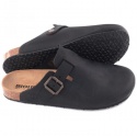 Sabot con tomaia in pelle nabuk ingrassato lavorato senza cuciture. Regolabile, con cinturino dotato di fibbia in metallo.
