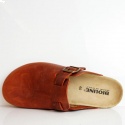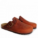 Sabot con tomaia in pelle nabuk ingrassato lavorato senza cuciture. Regolabile, con cinturino dotato di fibbia in metallo. Plantare dalla forma anatomica in gomma-sughero, suola gomma Vibram®.