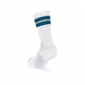 Le Rockies si tingono di Bianco per la prima volta! Abbiamo tolto tutto e aggiunto solo il necessario: una protezione sulle dita, l'antiscivolo sotto i metatarsi, l'areazione sulla parte superiore, una leggera compressione sulla fascia plantare, una speciale trama antisfregamento sul tallone e sul tendine d'achille. L'altezza superiore protegge la caviglia dallo sporco. La banda catarifrangente, in mezzo alle due bande petrolio, garantisce una maggiore visibilità notturna. Il risultato è una calza che unisce comfort, performance, stile e protezione adatta alle lunghe distanze.