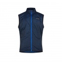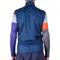 Smanicato antivento leggero e confortevole. Realizzato in tessuto stretch blu con effetto crepé blu. Ripiegabile nella tasca interna.